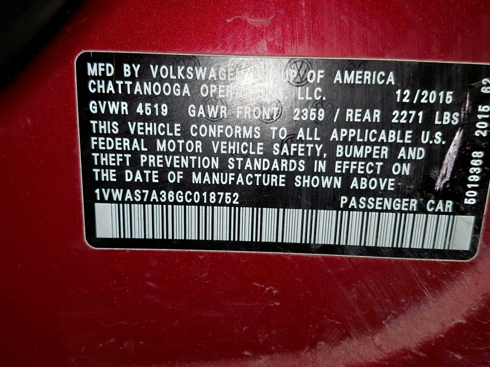 VIN: 1VWAS7A36GC018752