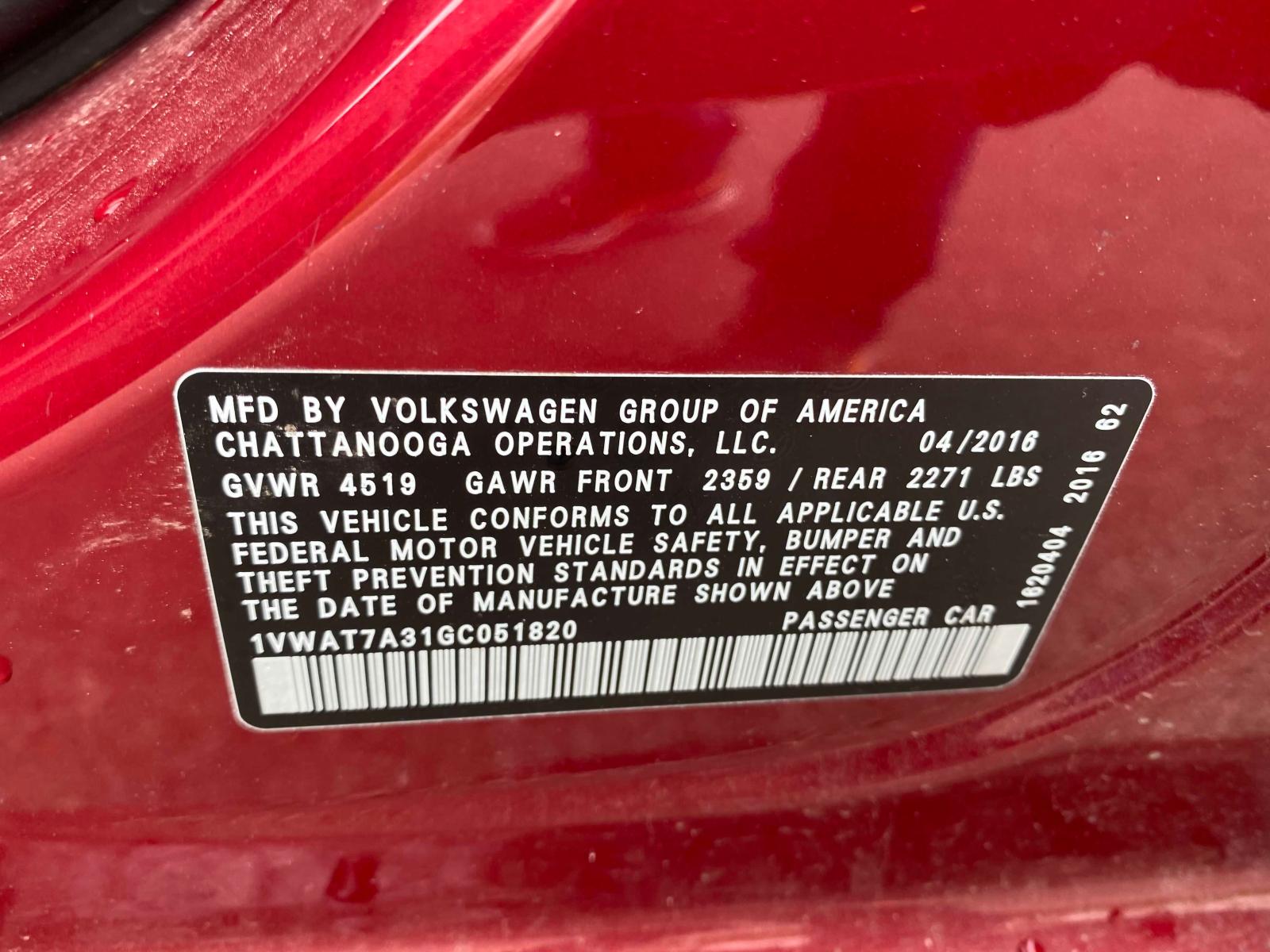 VIN: 1VWAT7A31GC051820