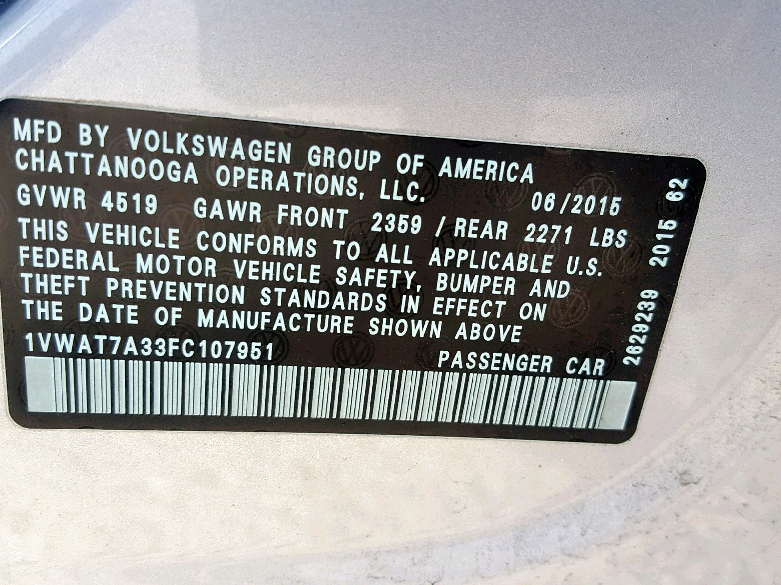 VIN: 1VWAT7A33FC107951
