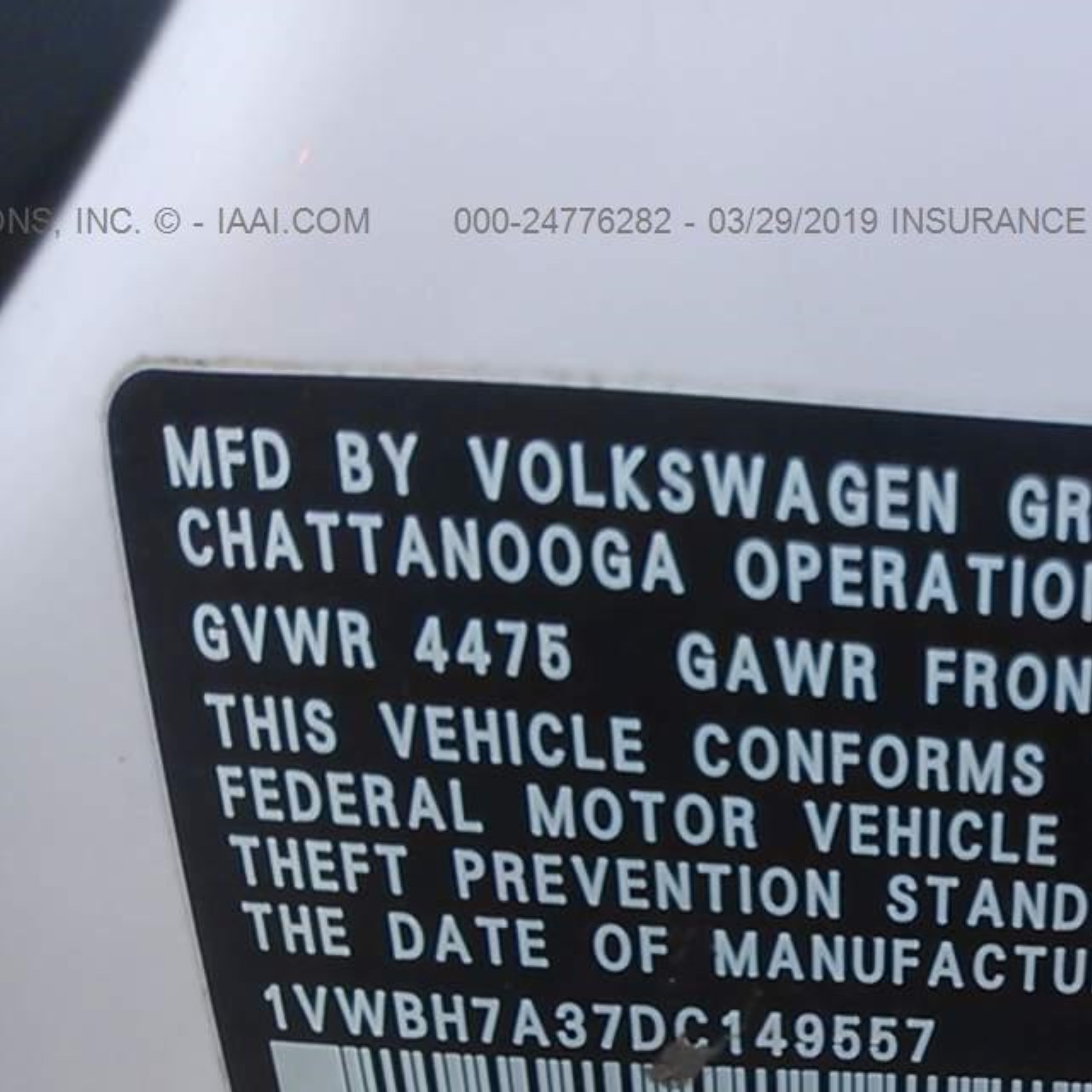 VIN: 1VWBH7A37DC149557