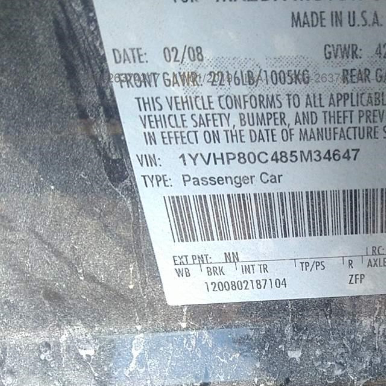 VIN: 1YVHP80C485M34647