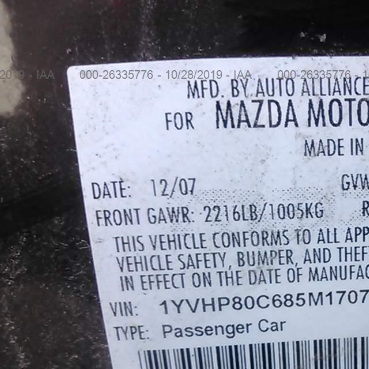 VIN: 1YVHP80C685M17073