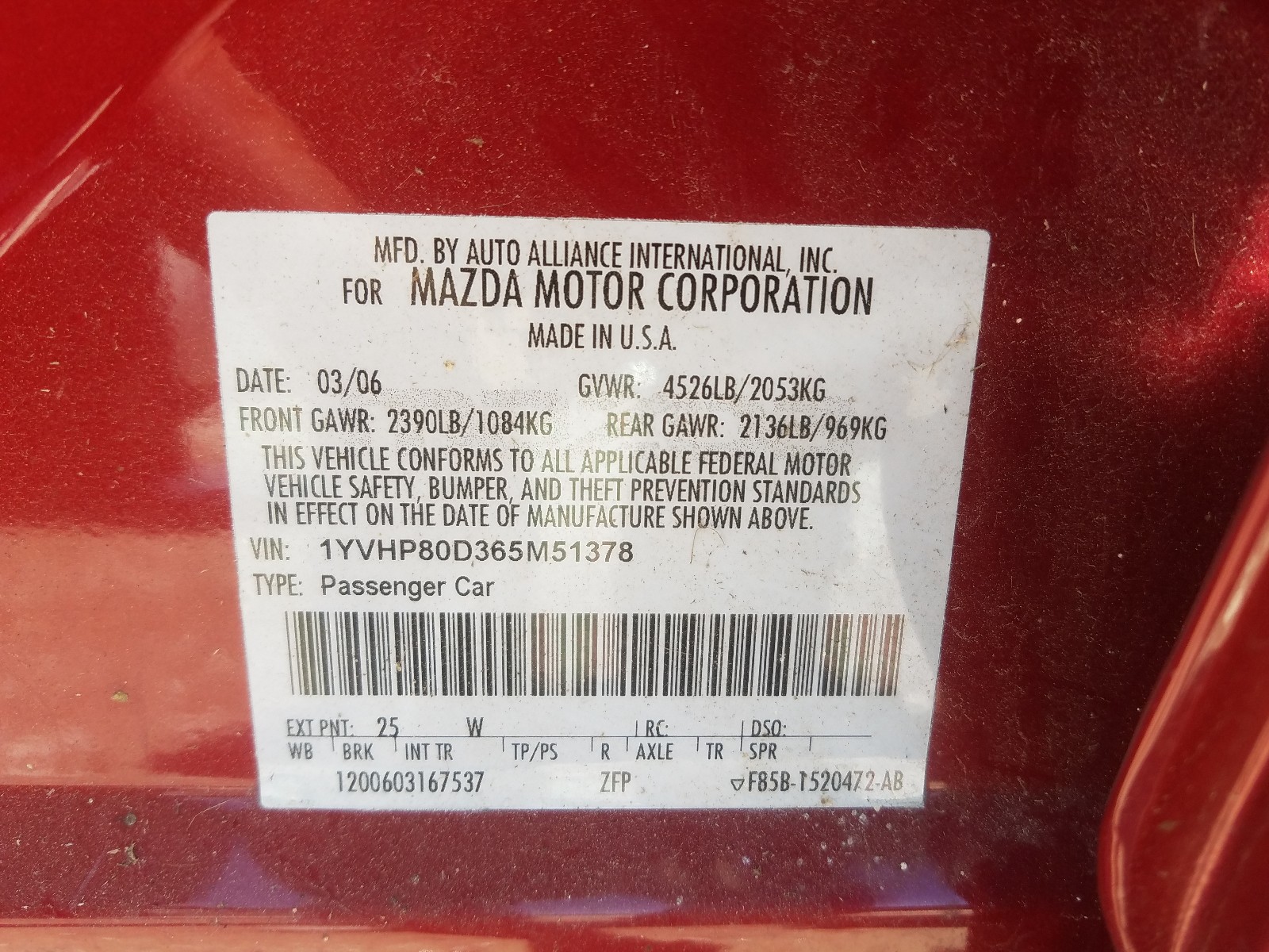 VIN: 1YVHP80D365M51378