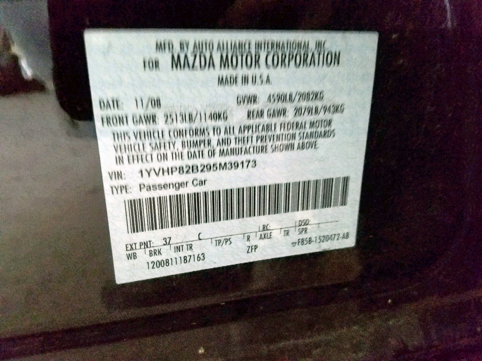 VIN: 1YVHP82B295M39173