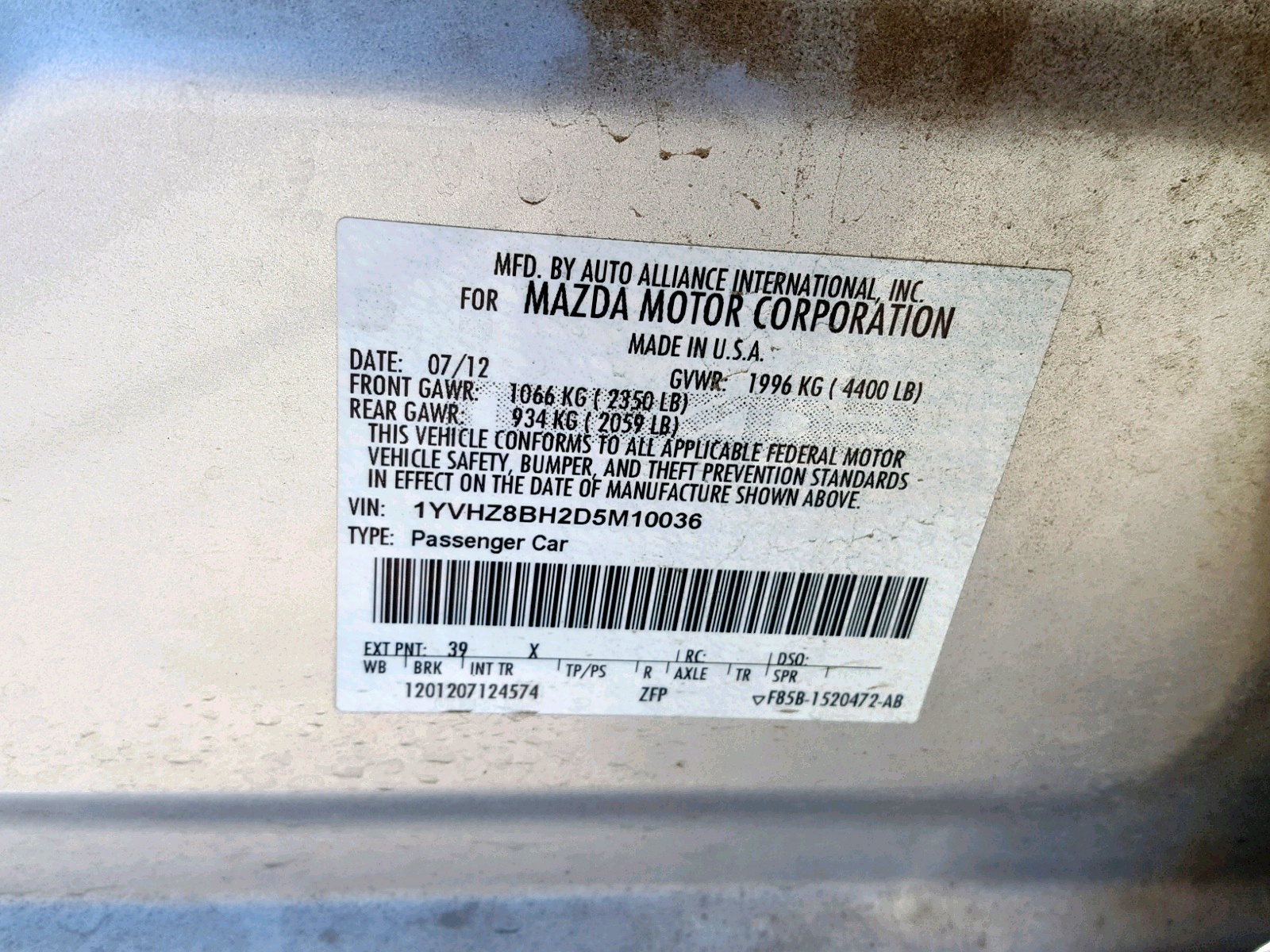 VIN: 1YVHZ8BH2D5M10036