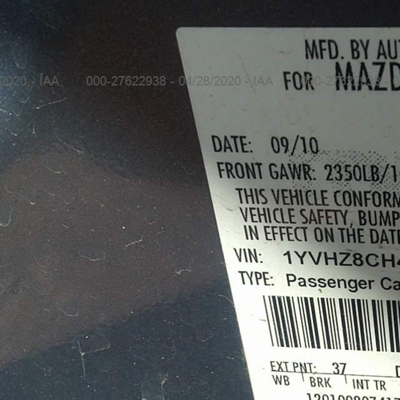 VIN: 1YVHZ8CH4A5M55876