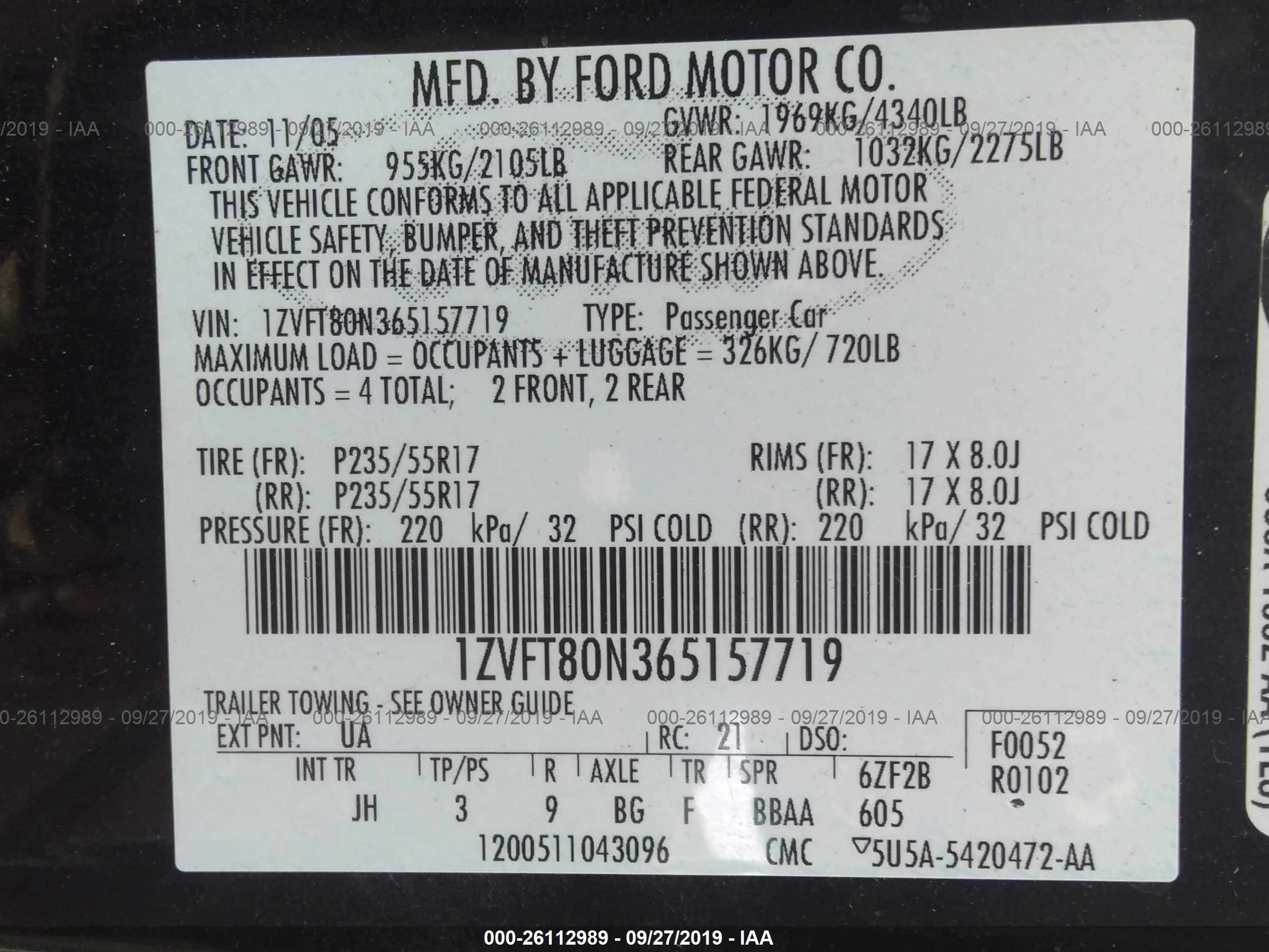 VIN: 1ZVFT80N365157719