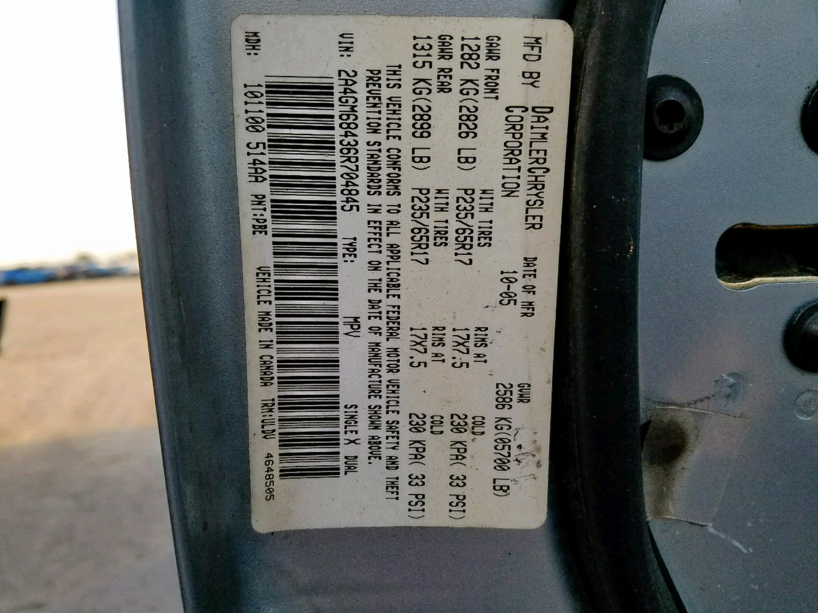 VIN: 2A4GM68436R704845