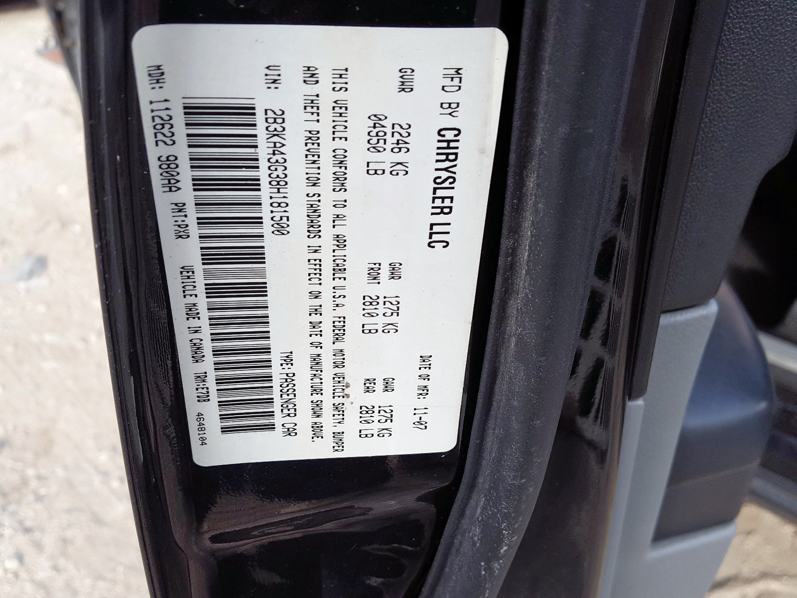 VIN: 2B3KA43G38H181500