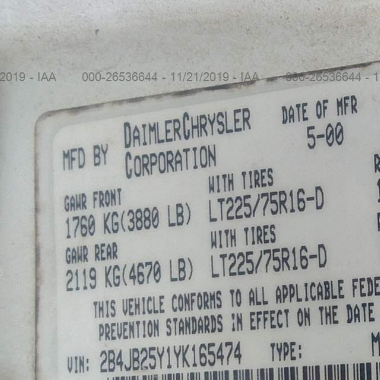 VIN: 2B4JB25Y1YK165474