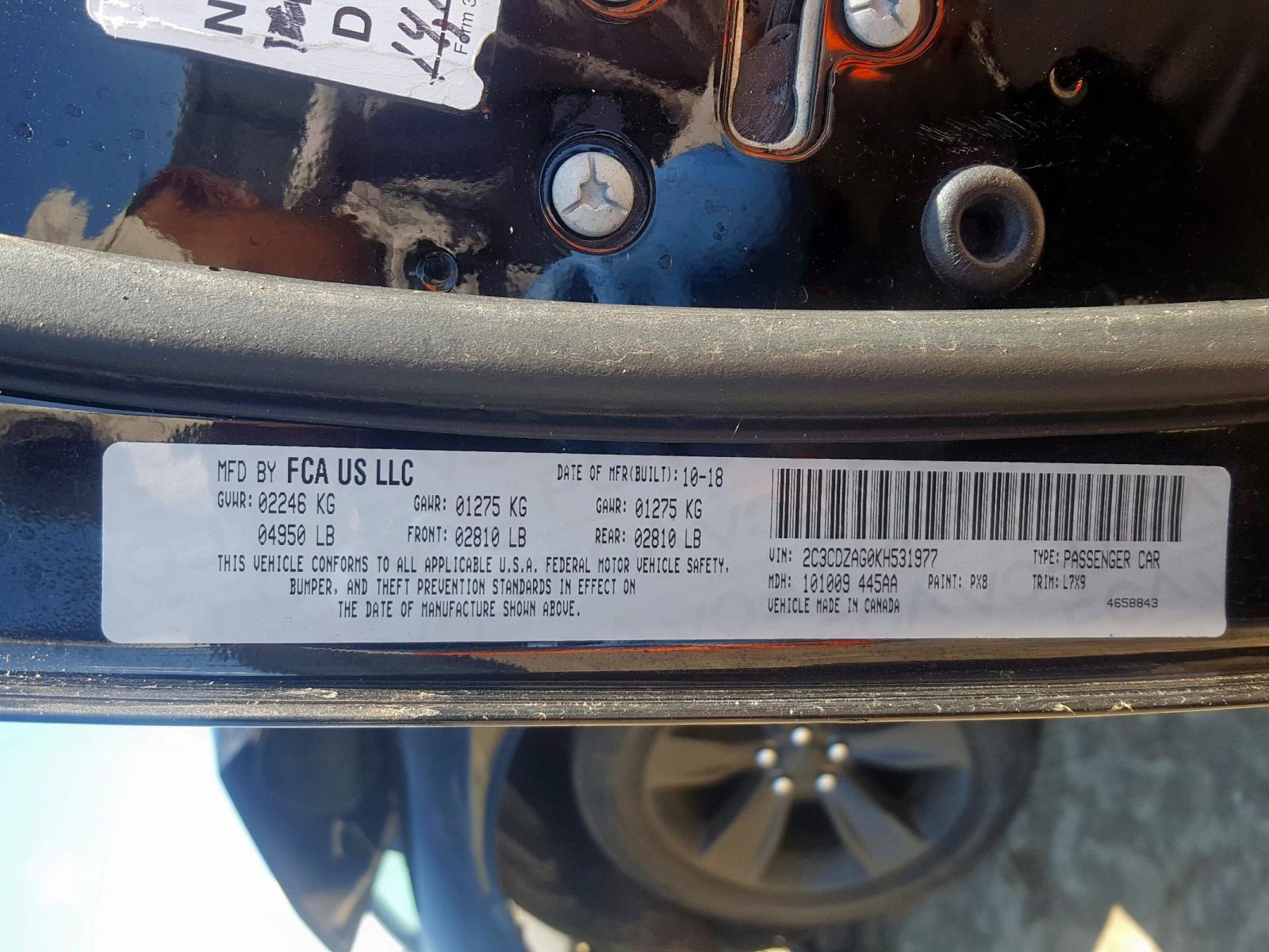 VIN: 2C3CDZAG0KH531977