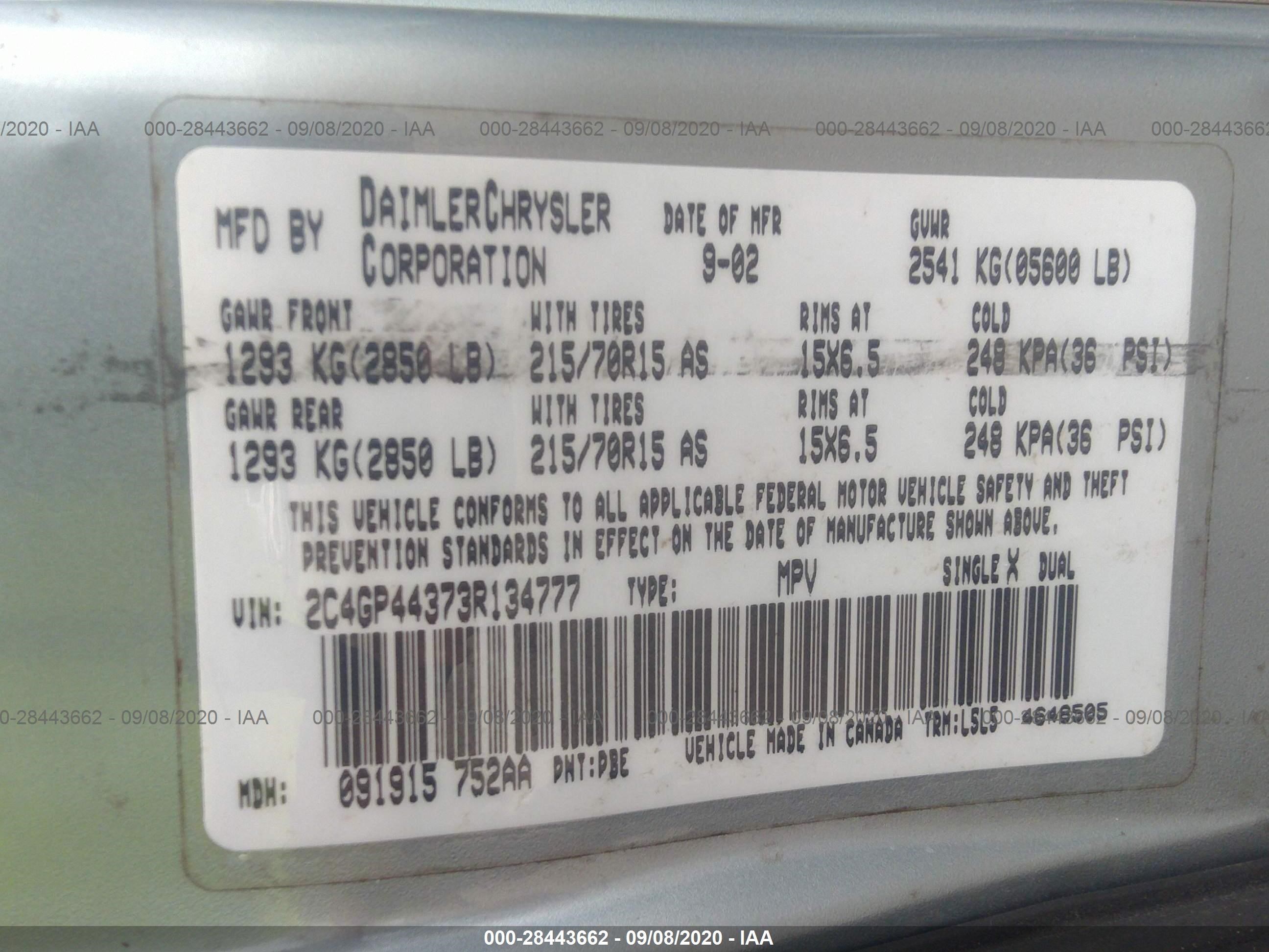 VIN: 2C4GP44373R134777