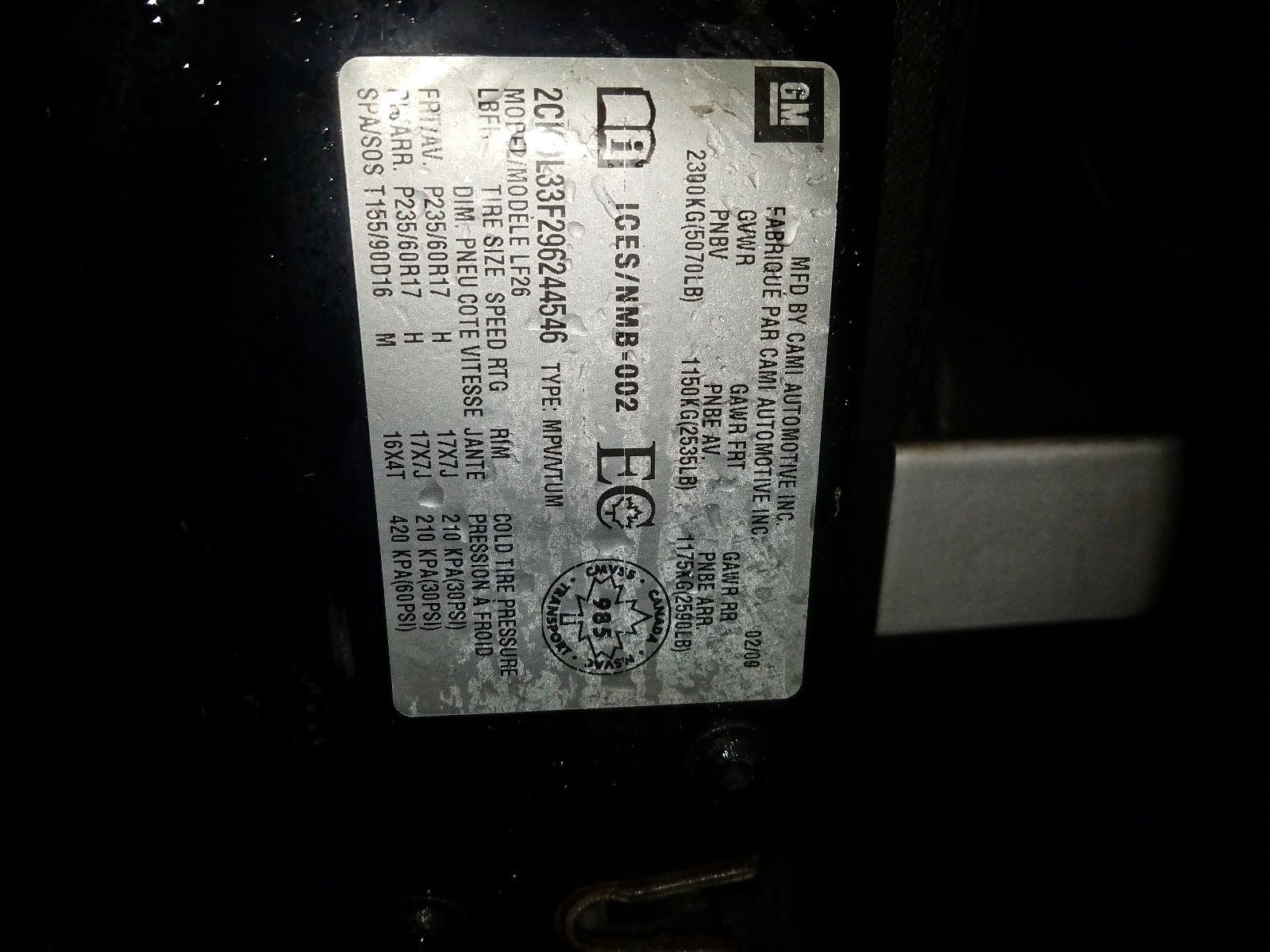 VIN: 2CKDL33F296244546