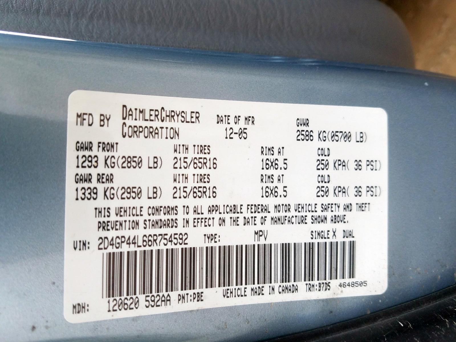 VIN: 2D4GP44L66R754592