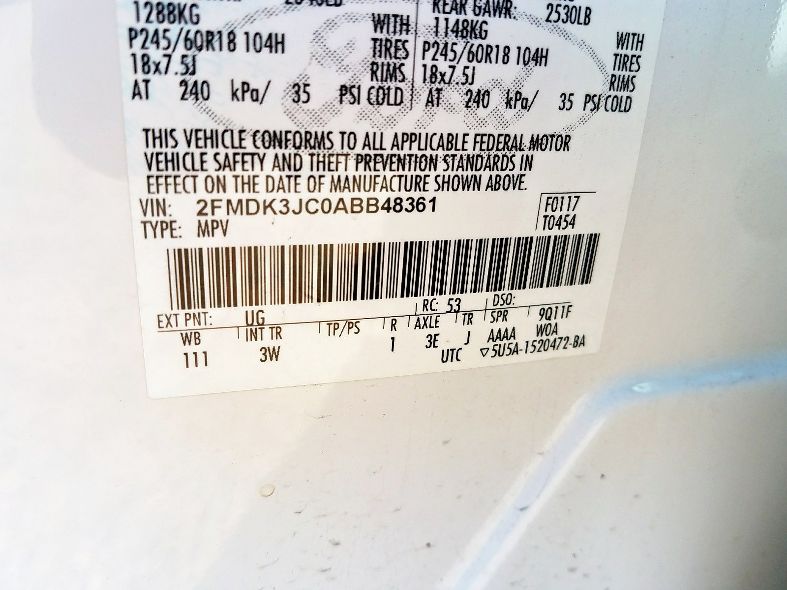 VIN: 2FMDK3JC0ABB48361