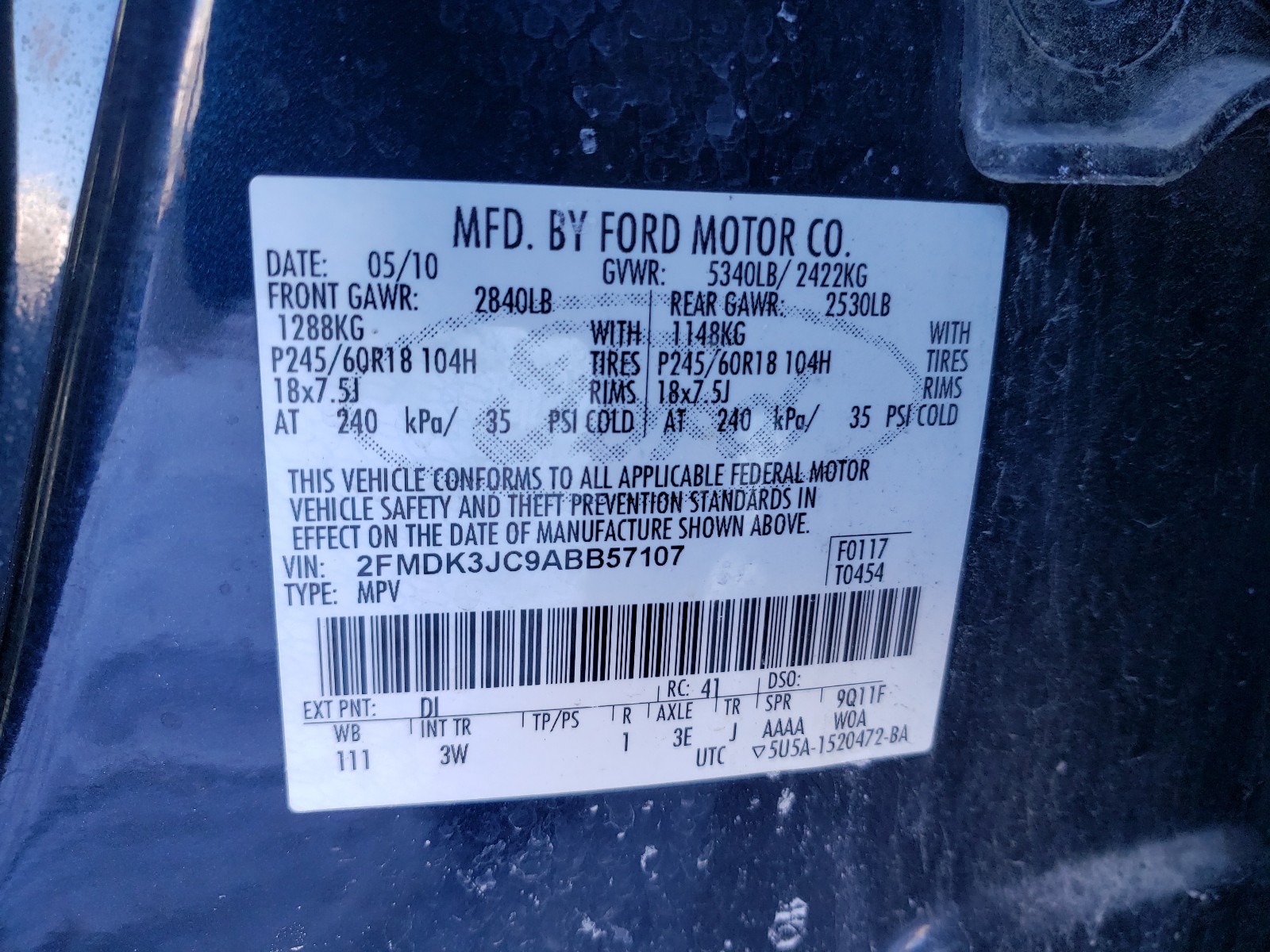 VIN: 2FMDK3JC9ABB57107