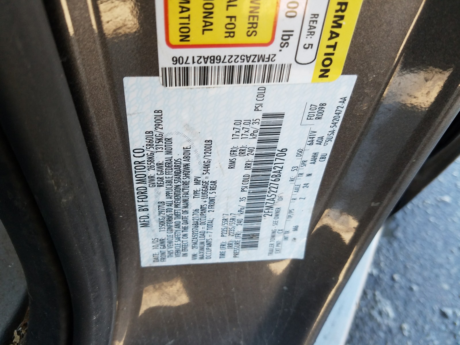 VIN: 2FMZA52276BA21706