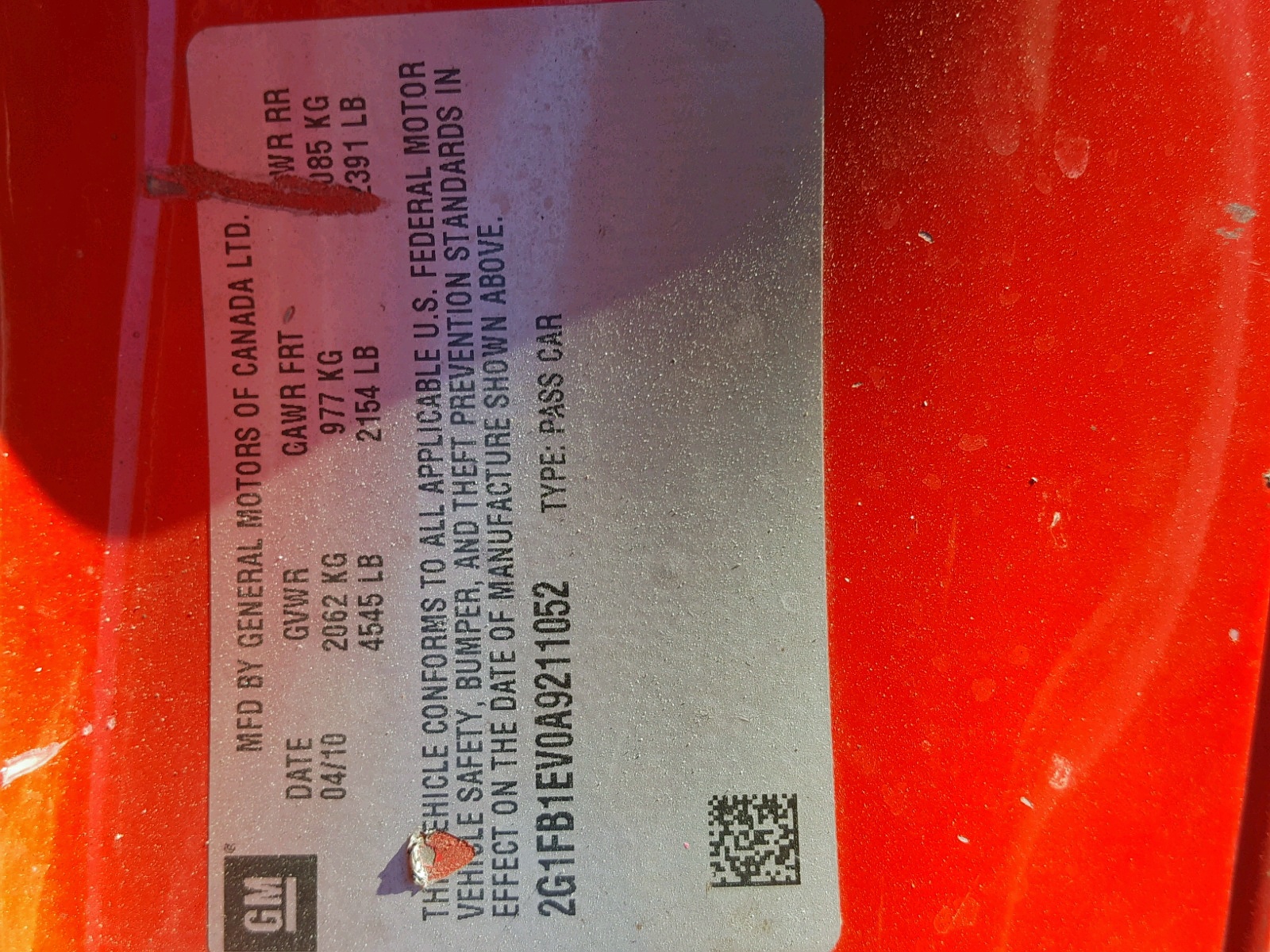 VIN: 2G1FB1EV0A9211052