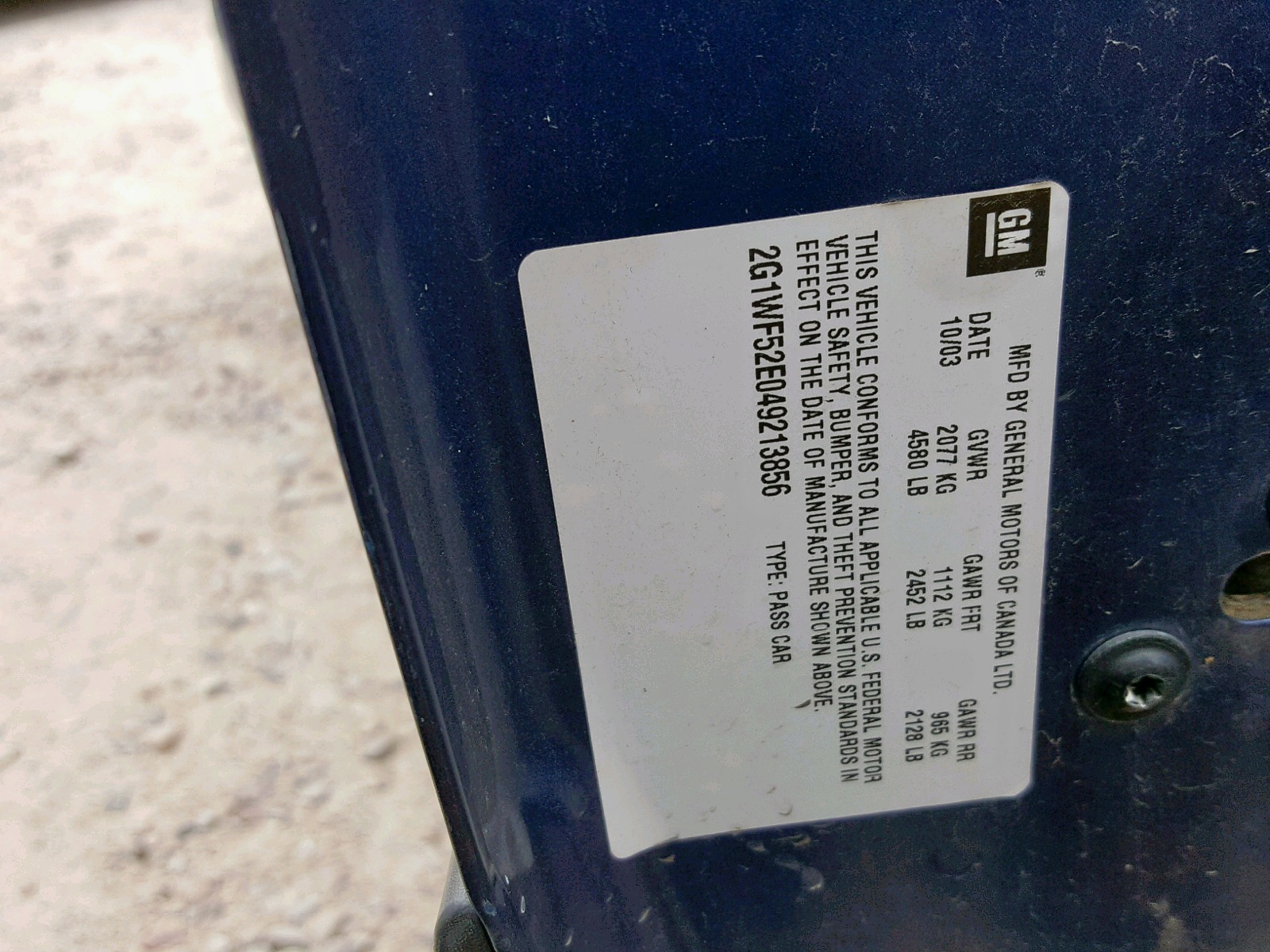 VIN: 2G1WF52E049213856