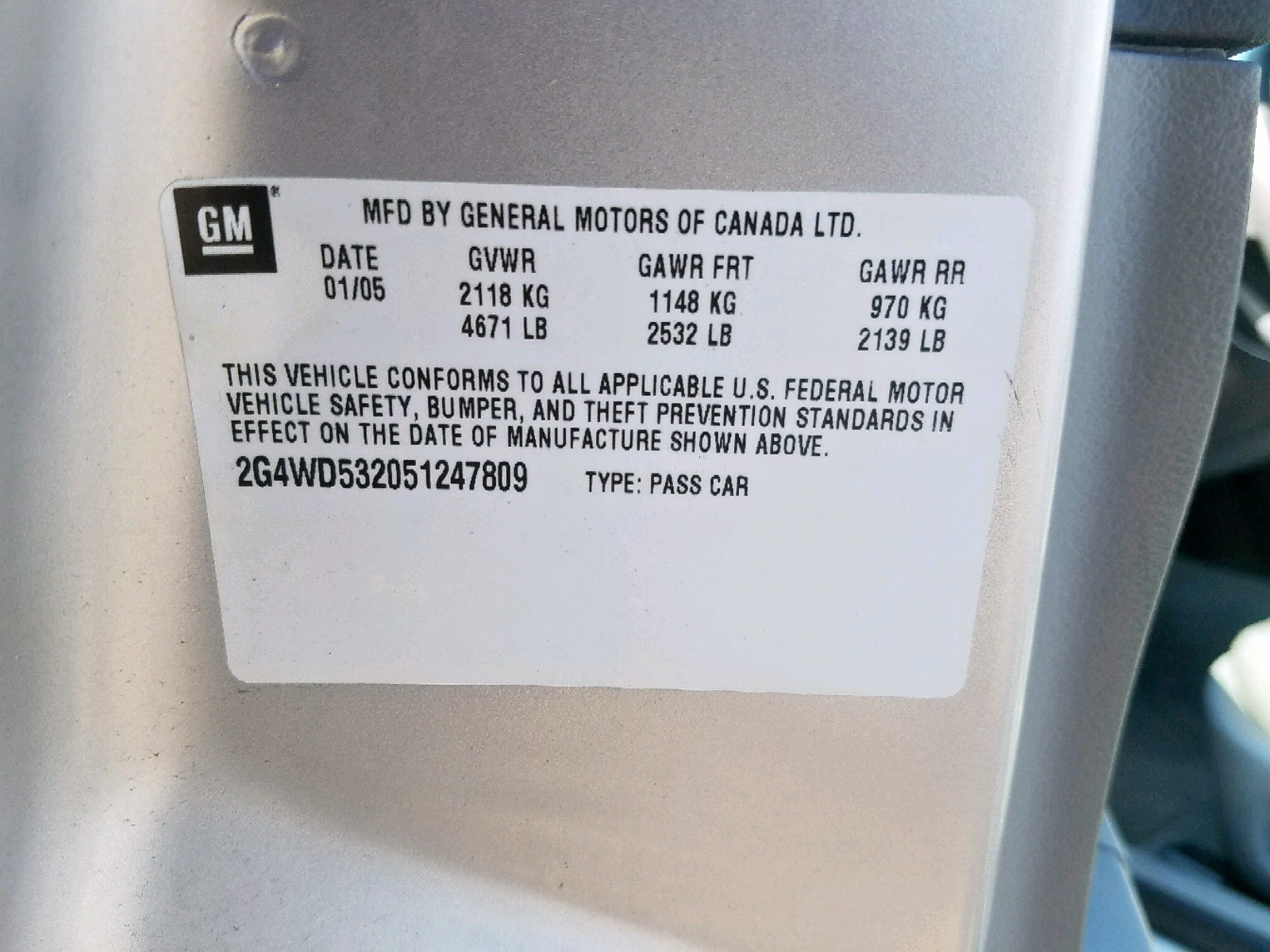 VIN: 2G4WD532051247809