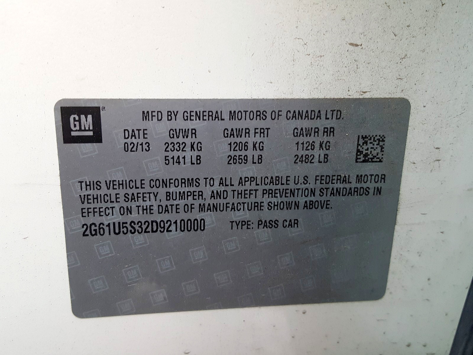 VIN: 2G61U5S32D9210000