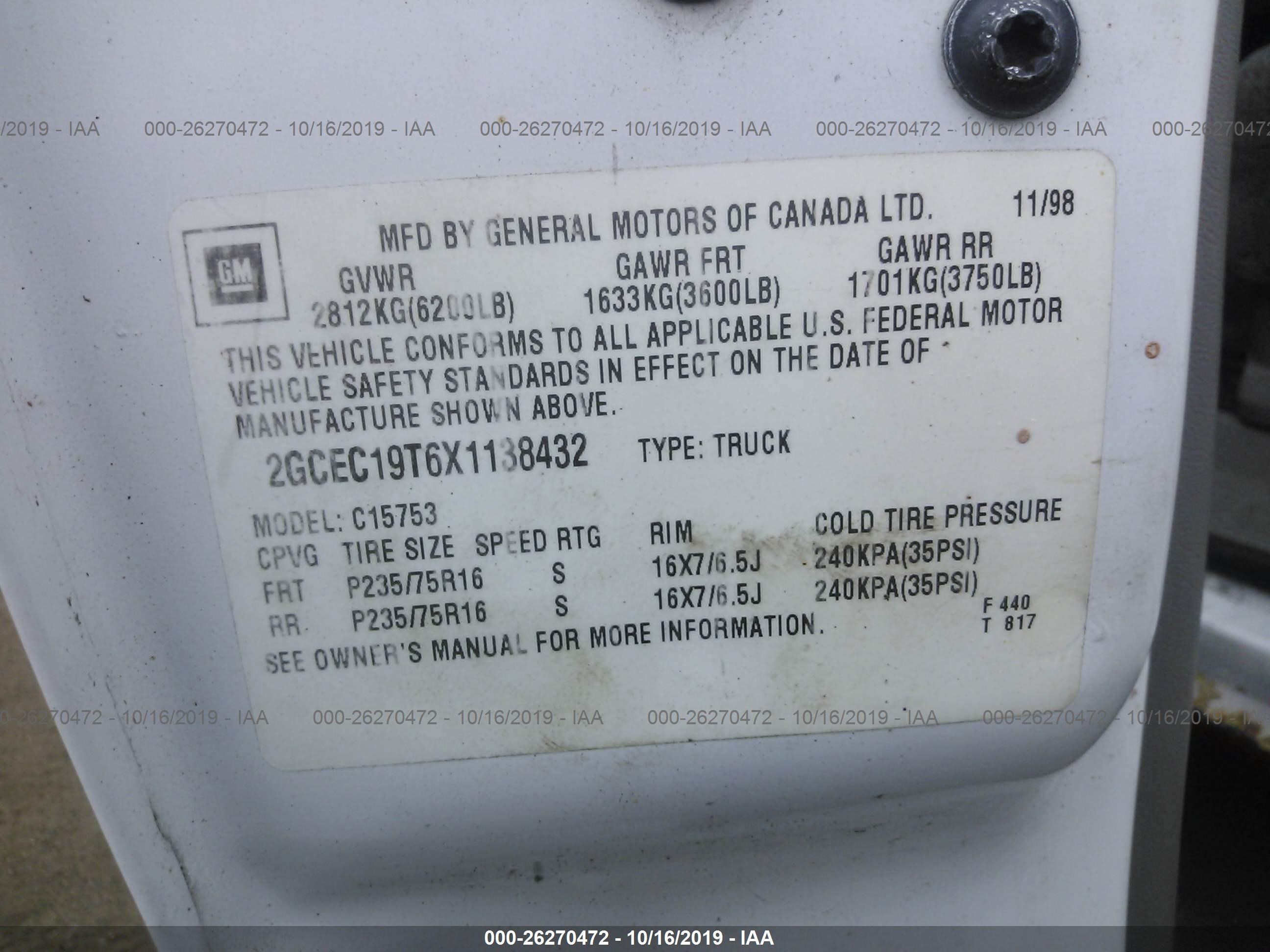 VIN: 2GCEC19T6X1138432