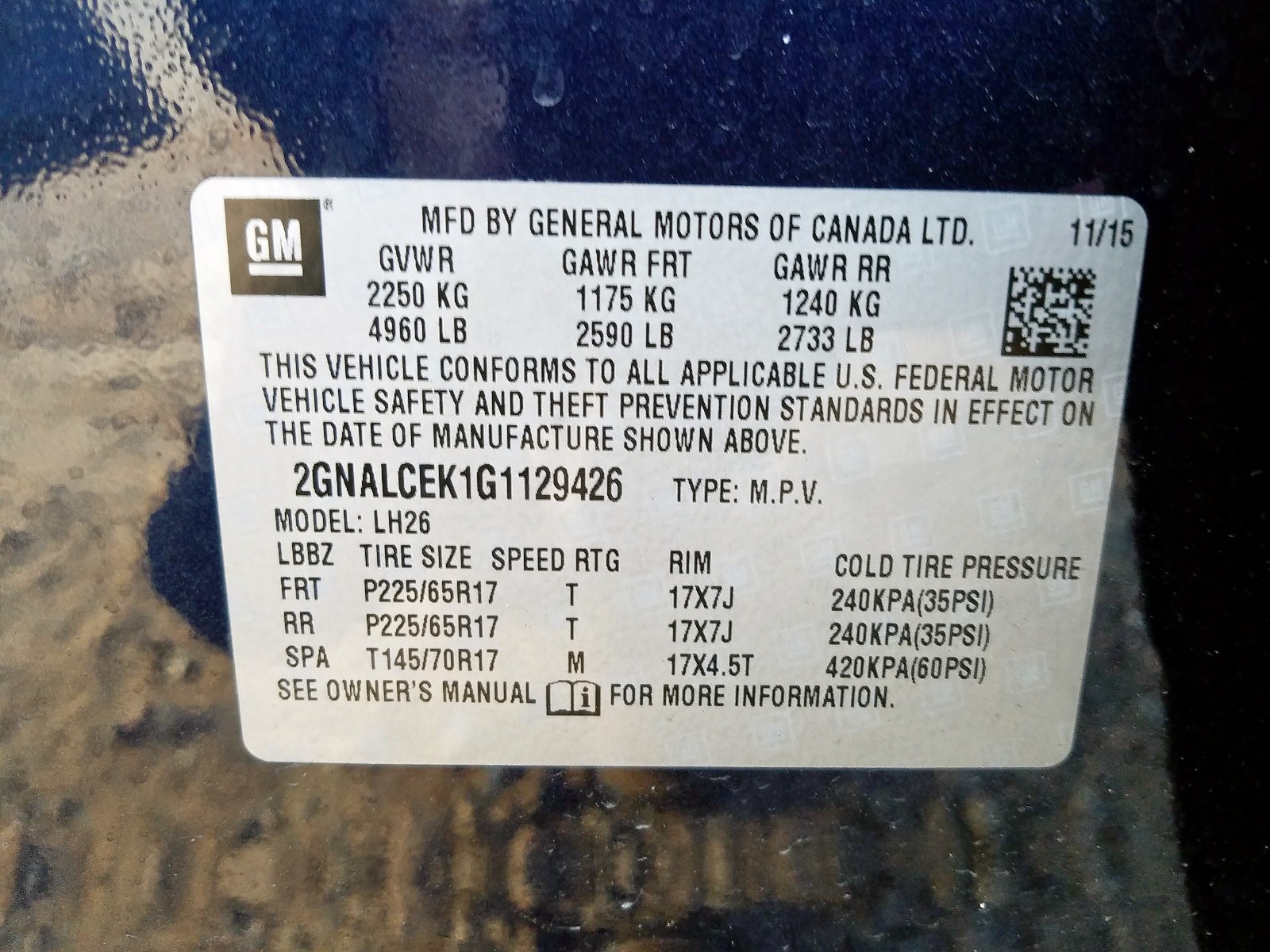 VIN: 2GNALCEK1G1129426