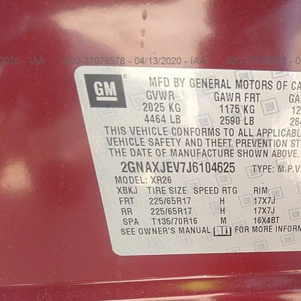 VIN: 2GNAXJEV7J6104625