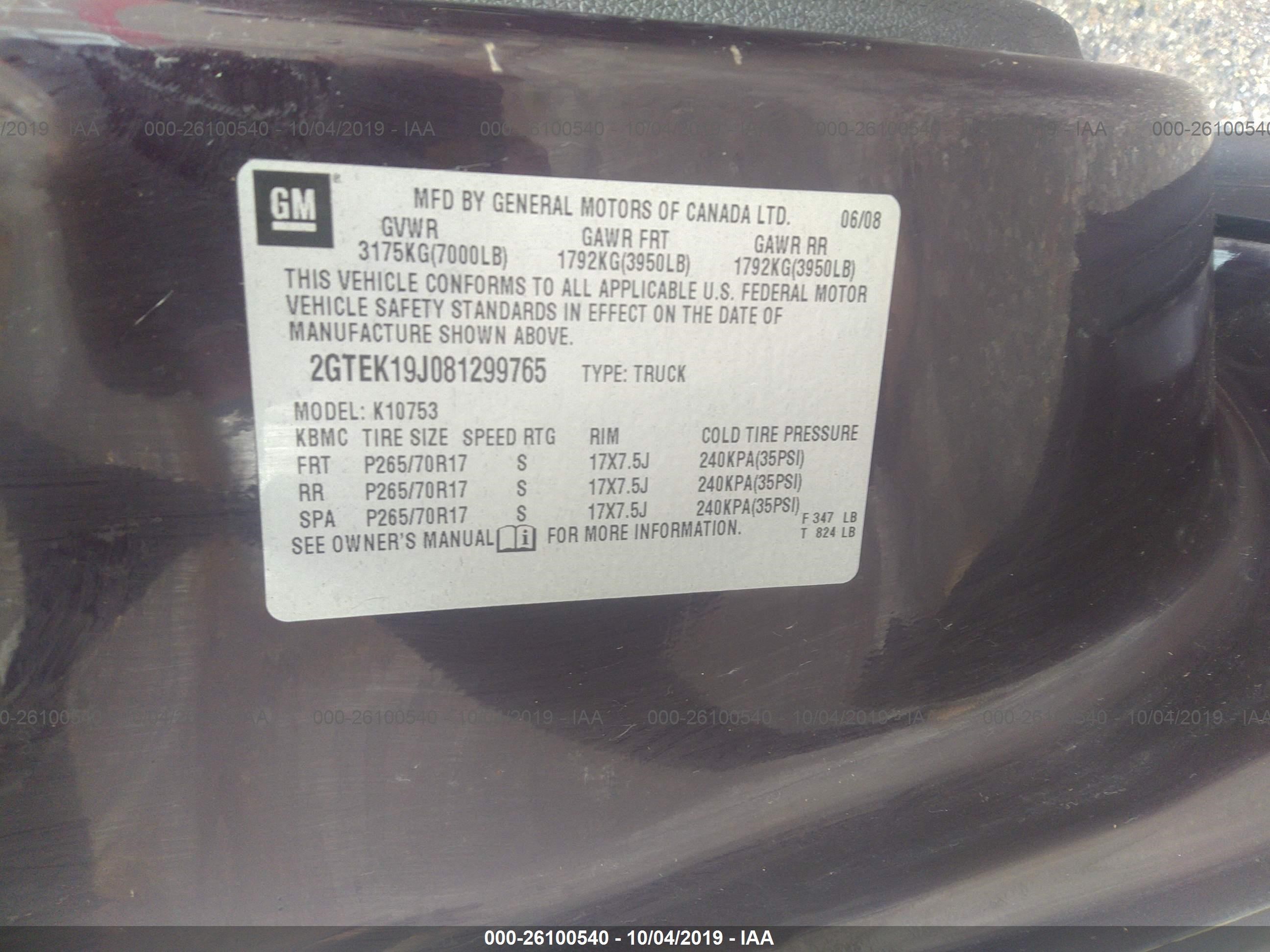 VIN: 2GTEK19J081299765