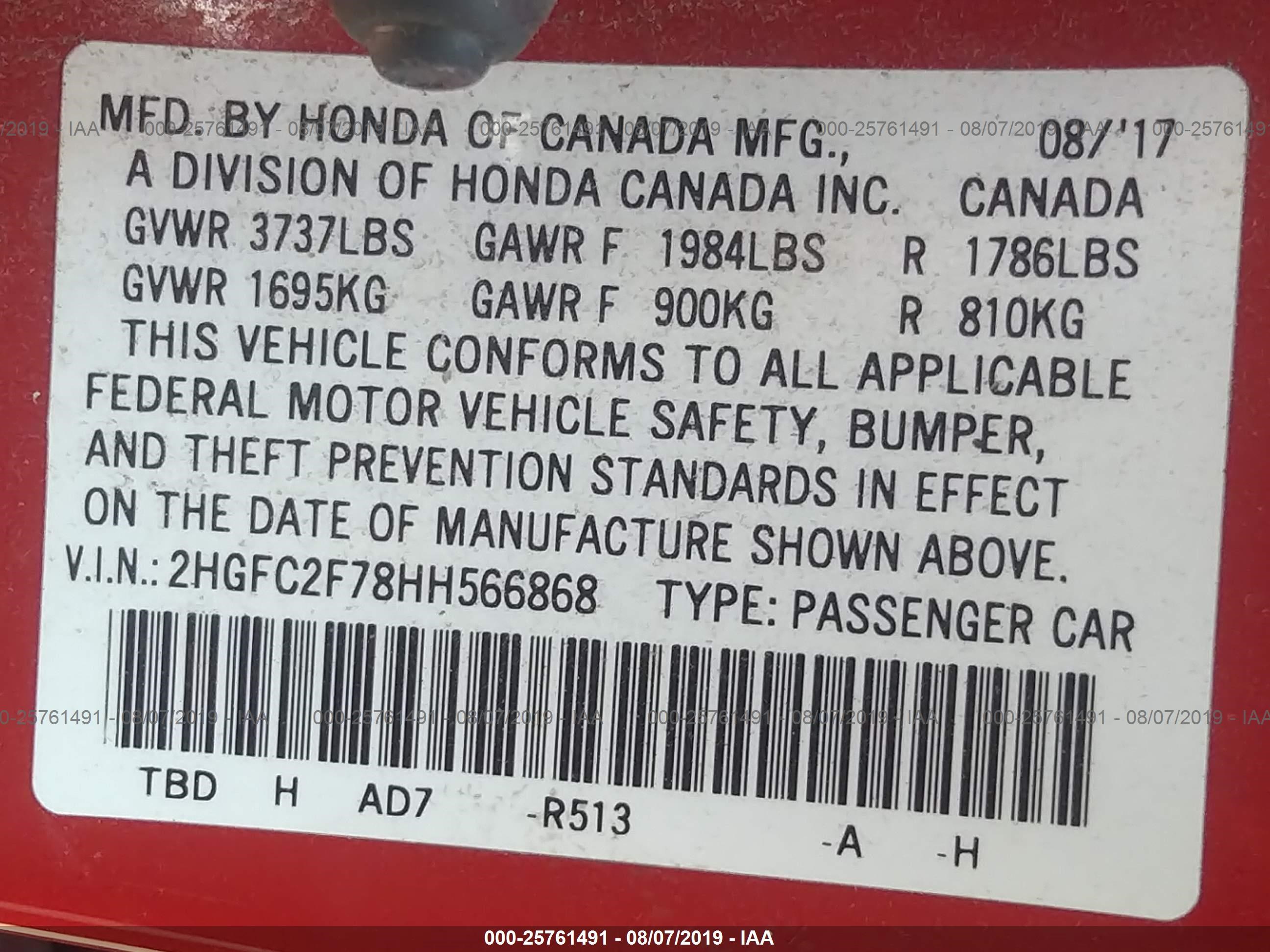 VIN: 2HGFC2F78HH566868