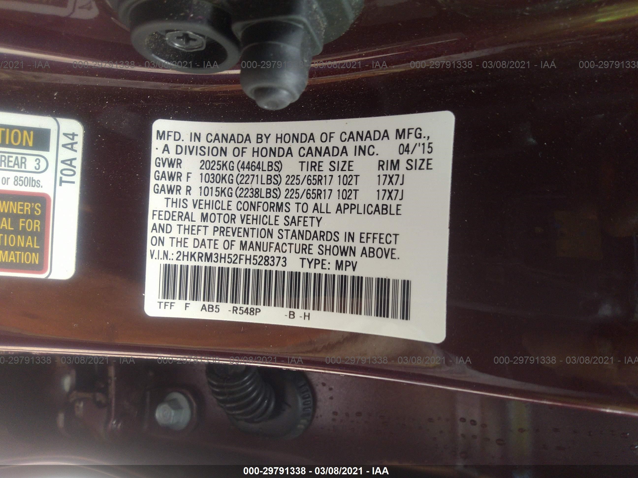 VIN: 2HKRM3H52FH528373