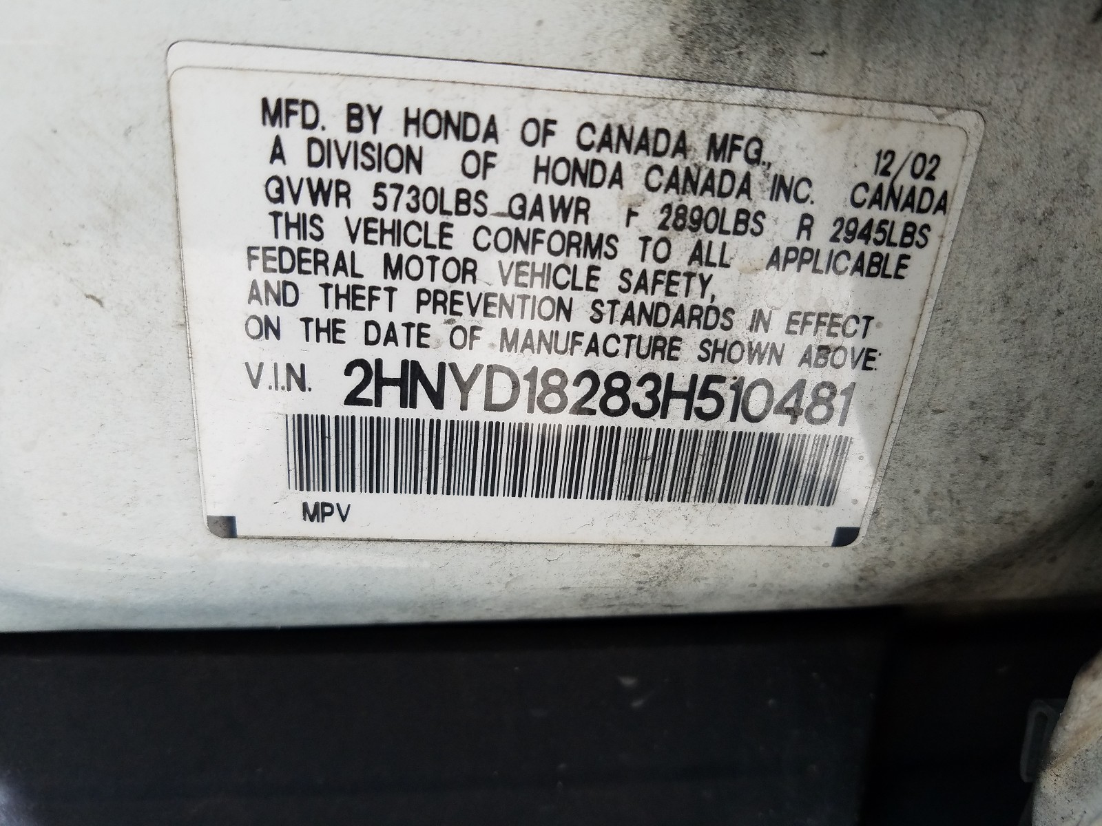 VIN: 2HNYD18283H510481
