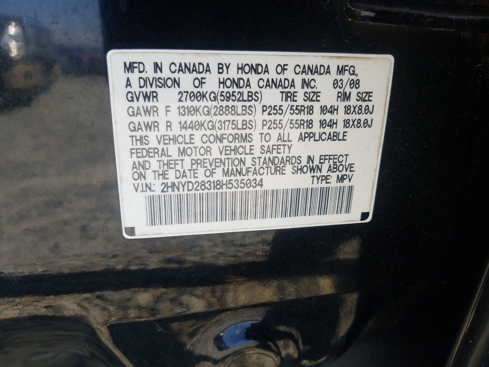 VIN: 2HNYD28318H535034