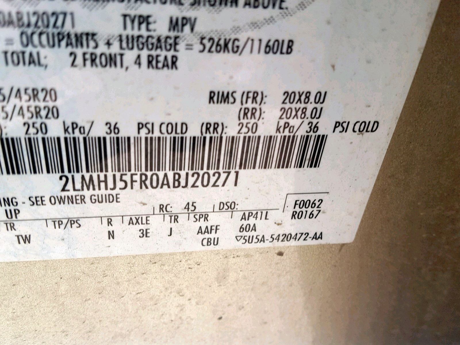 VIN: 2LMHJ5FR0ABJ20271