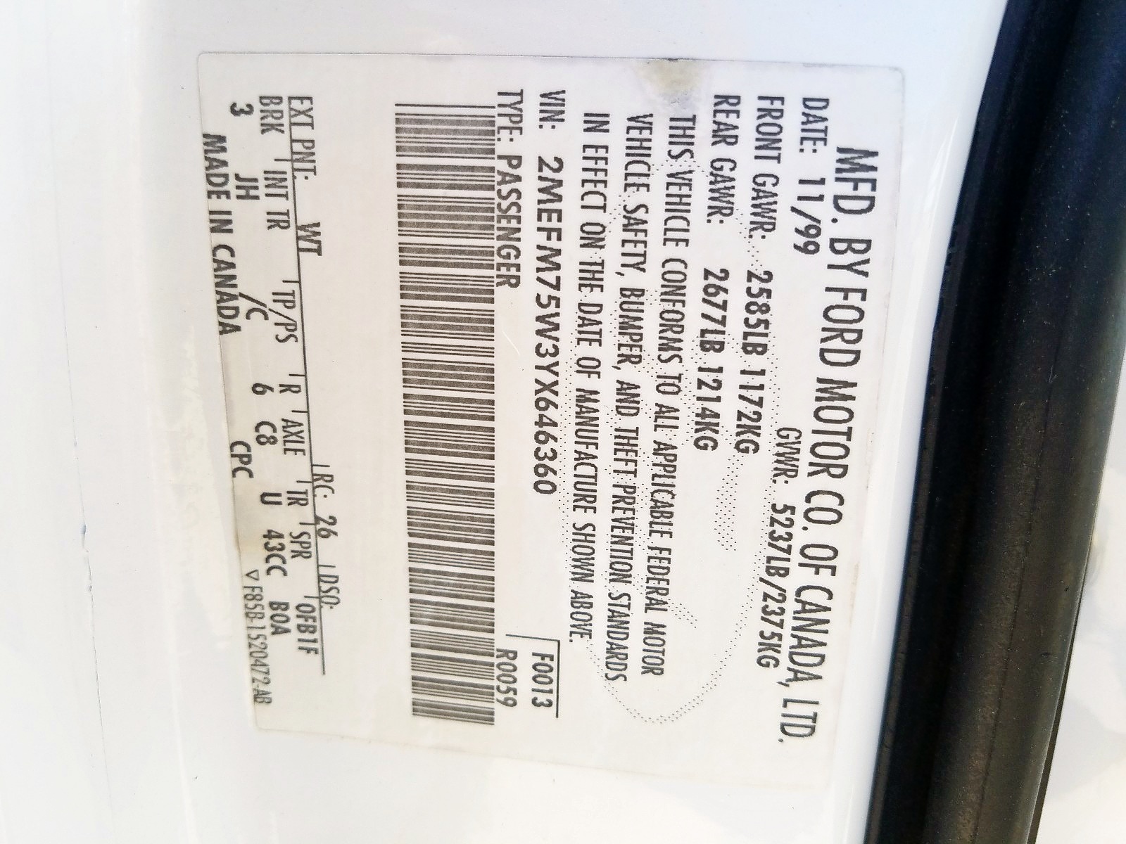 VIN: 2MEFM75W3YX646360