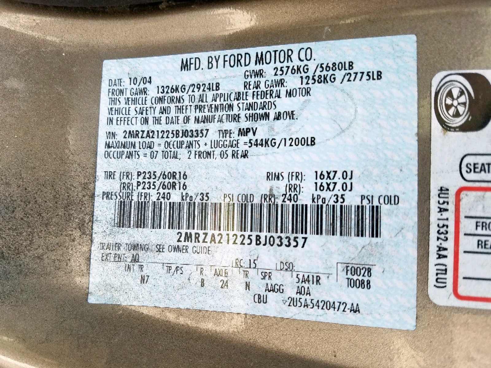 VIN: 2MRZA21225BJ03357