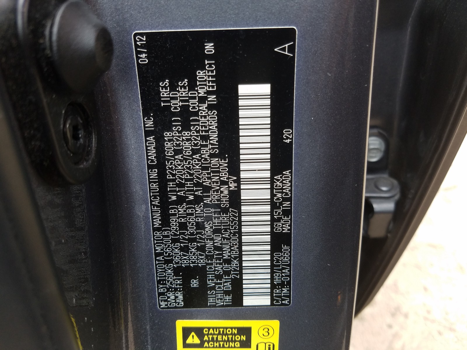 VIN: 2T2BK1BA3DC155227