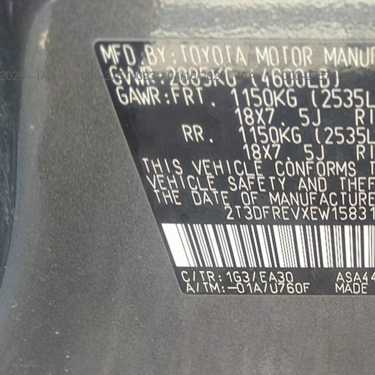 VIN: 2T3DFREVXEW158311