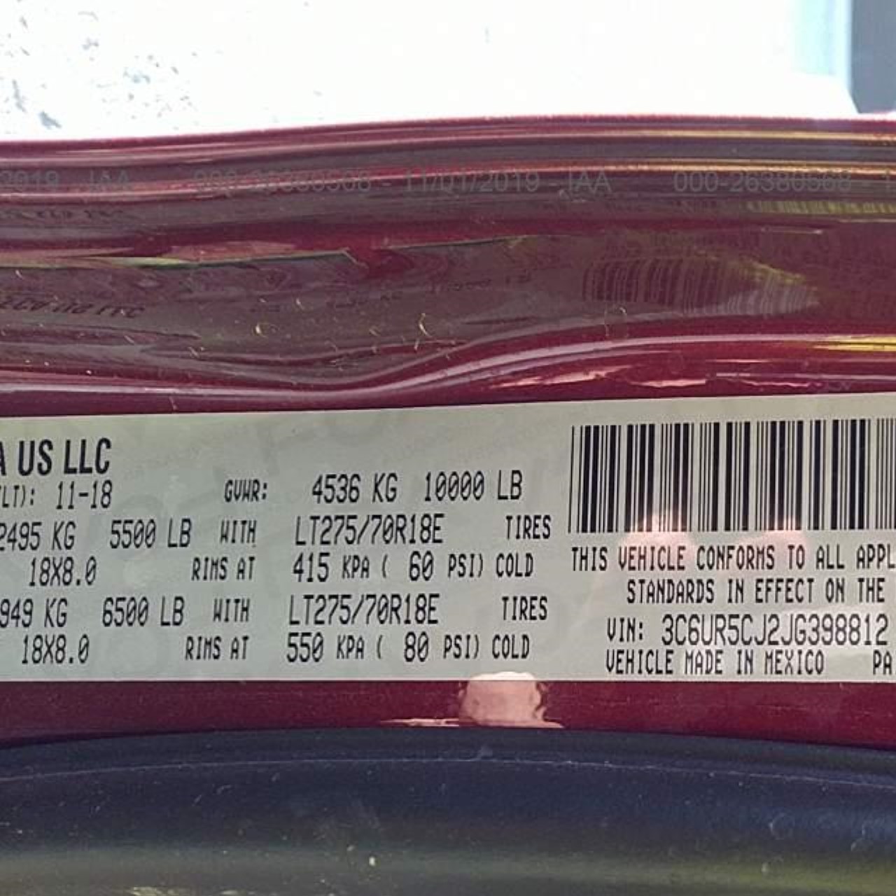 VIN: 3C6UR5CJ2JG398812