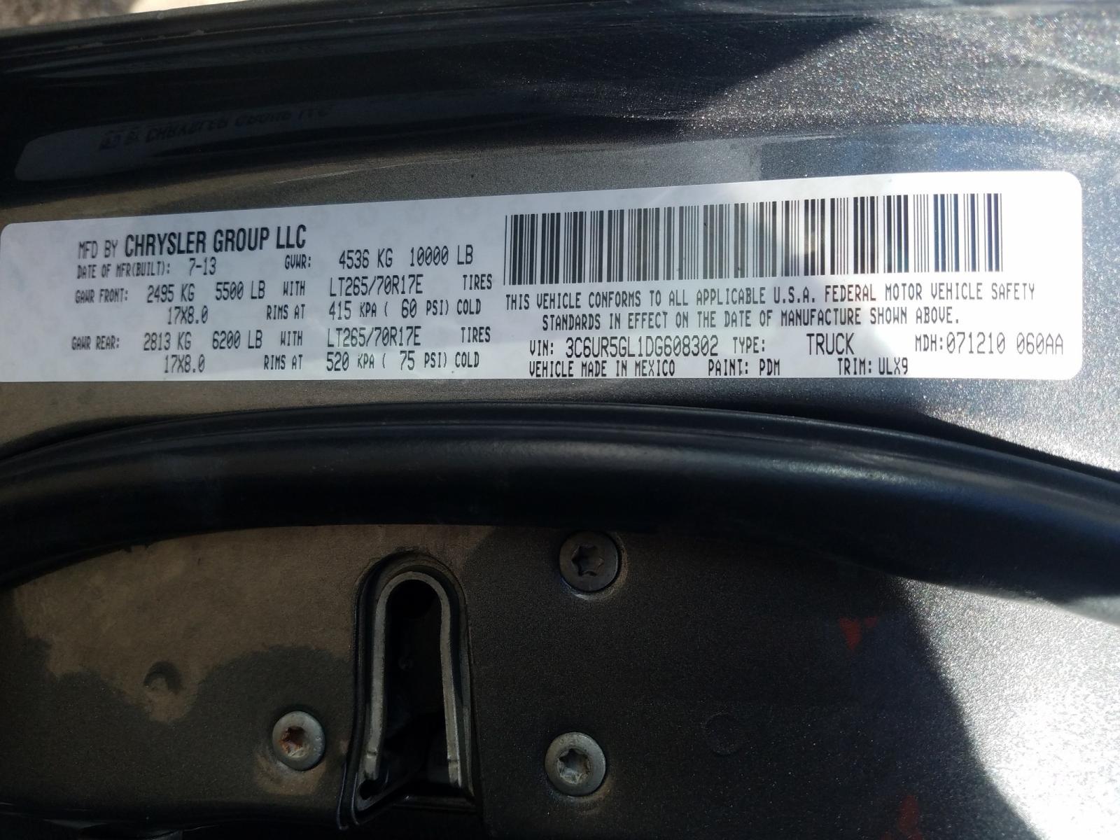 VIN: 3C6UR5GL1DG608302