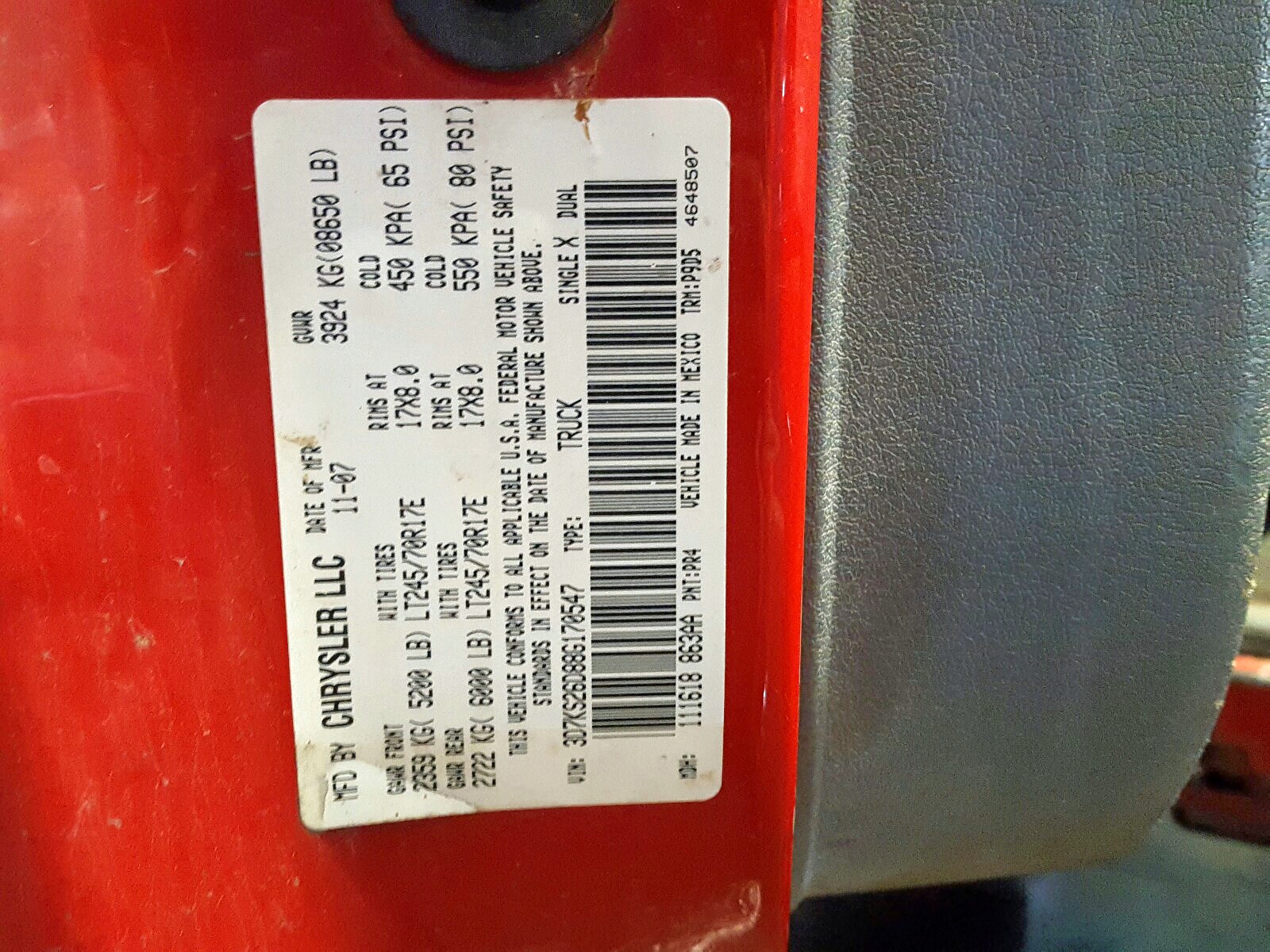 VIN: 3D7KS26D88G170547