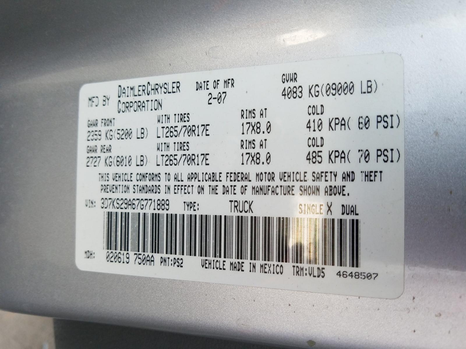 VIN: 3D7KS29A67G771889