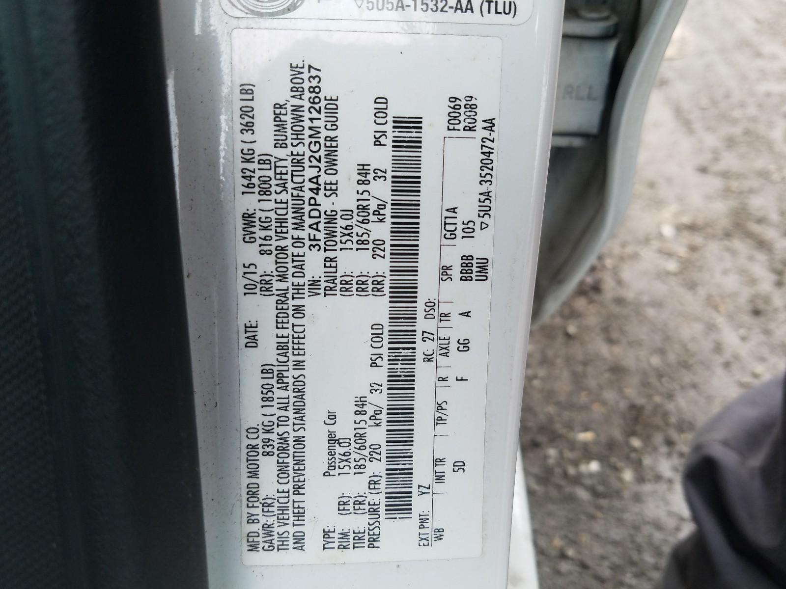 VIN: 3FADP4AJ2GM126837