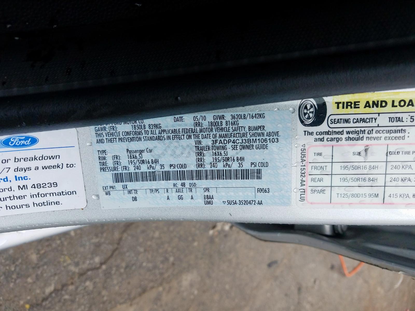 VIN: 3FADP4CJ3BM106103