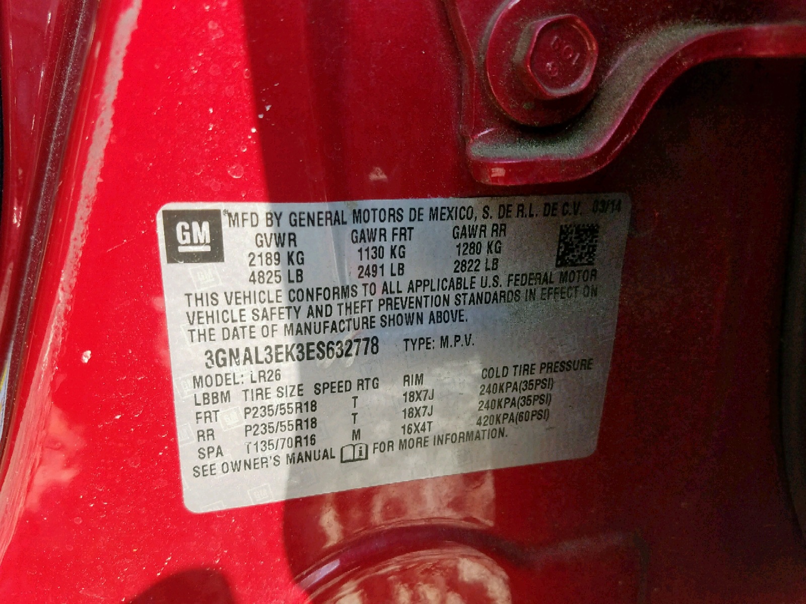 VIN: 3GNAL3EK3ES632778