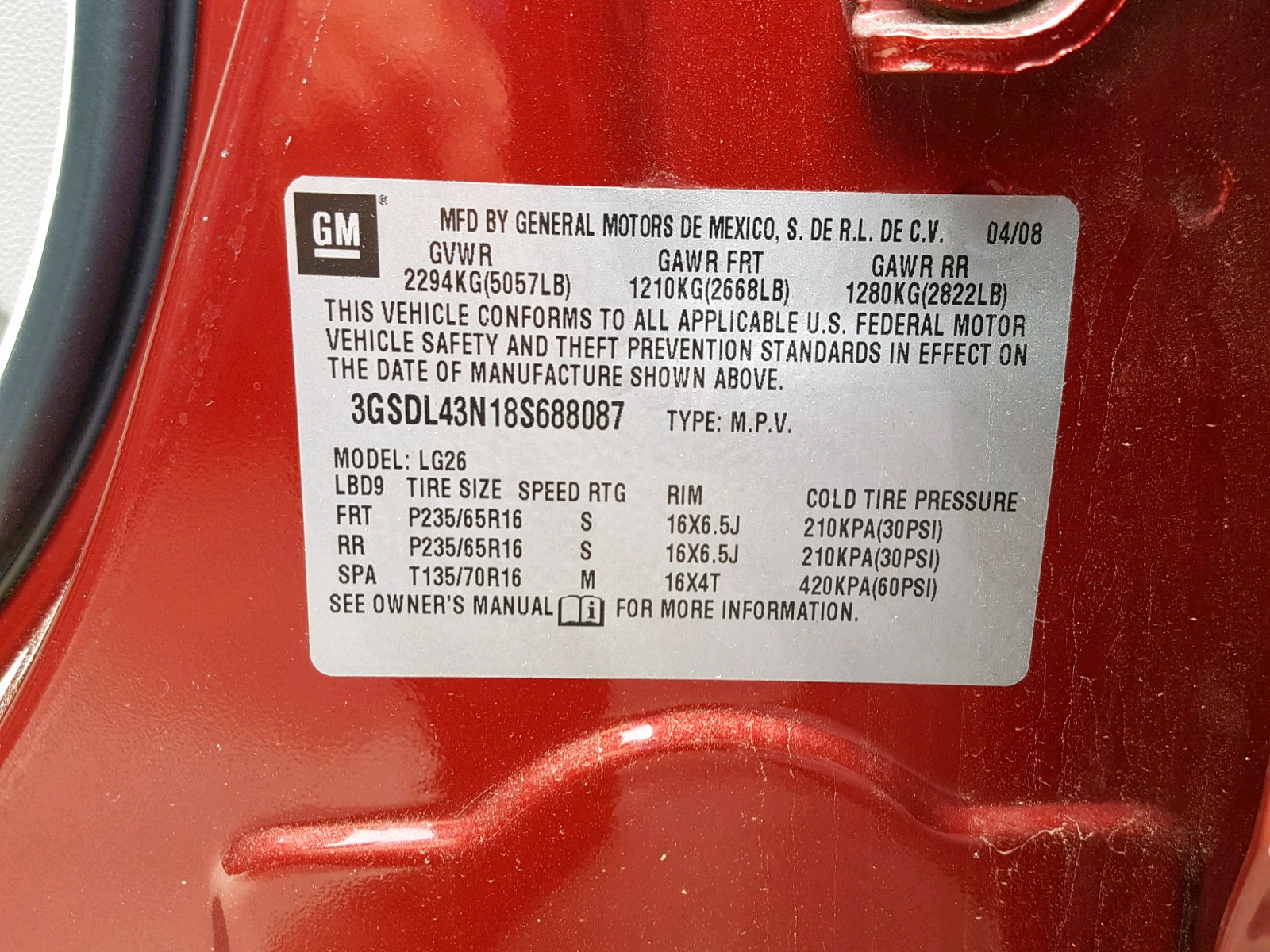 VIN: 3GSDL43N18S688087