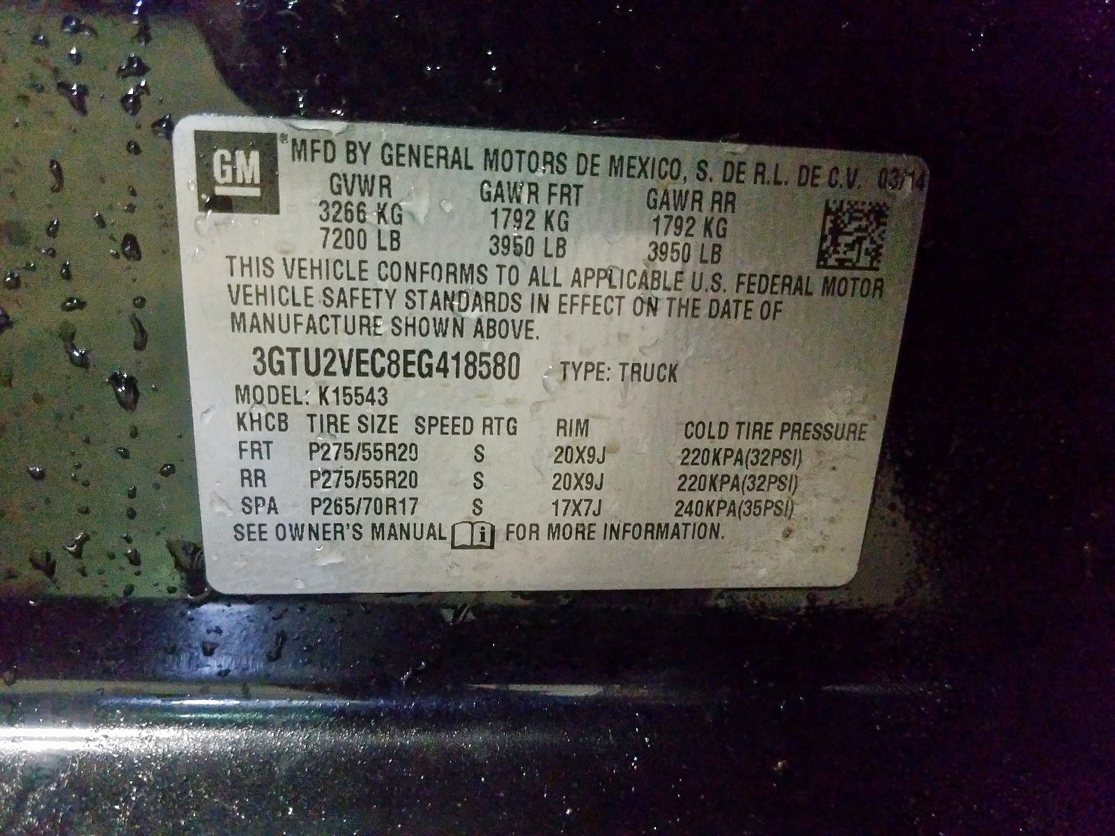 VIN: 3GTU2VEC8EG418580