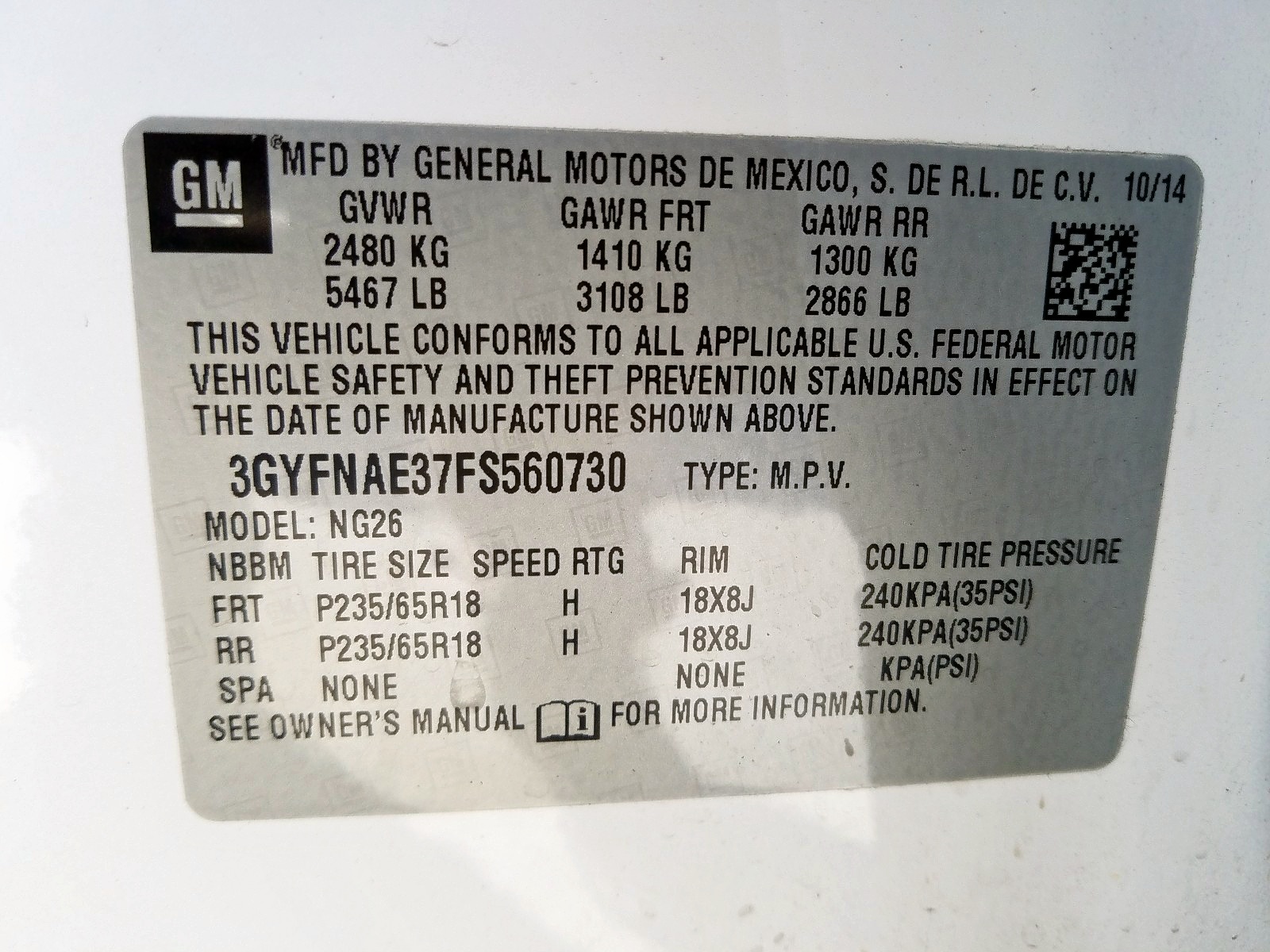 VIN: 3GYFNAE37FS560730