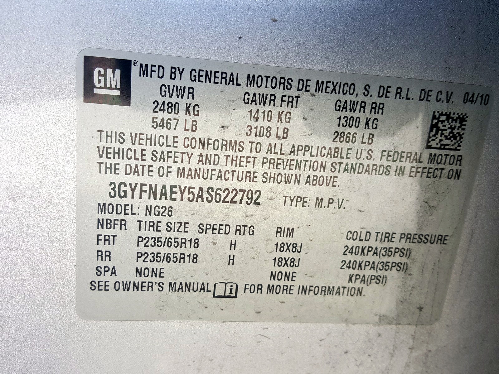 VIN: 3GYFNAEY5AS622792