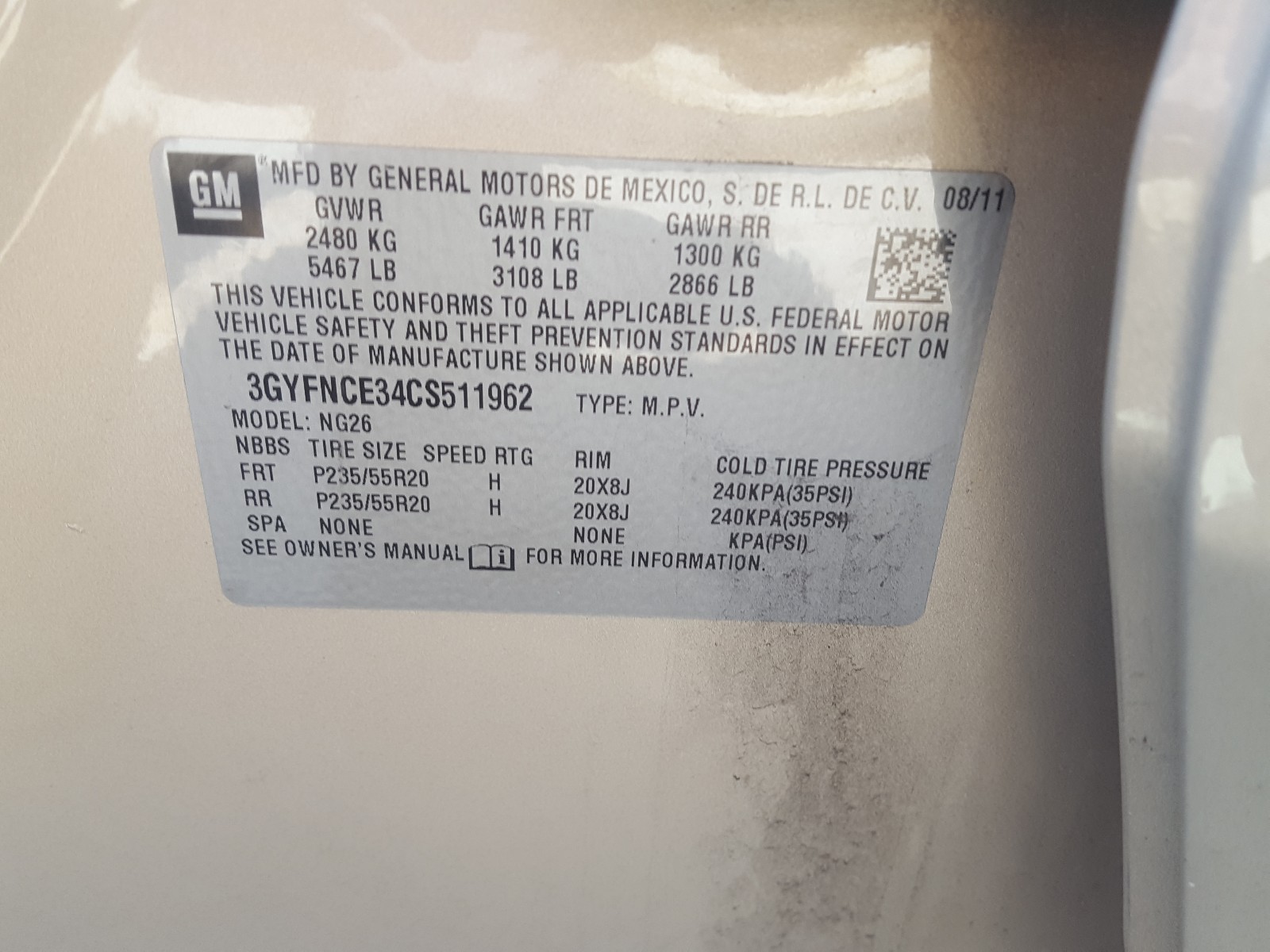 VIN: 3GYFNCE34CS511962